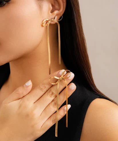 Sold outGold Bow Chain Statement Earrings