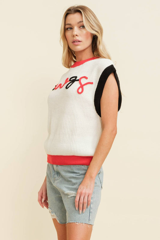 “DAWGS" Embroidered Colorblock Sleeveless Sweater