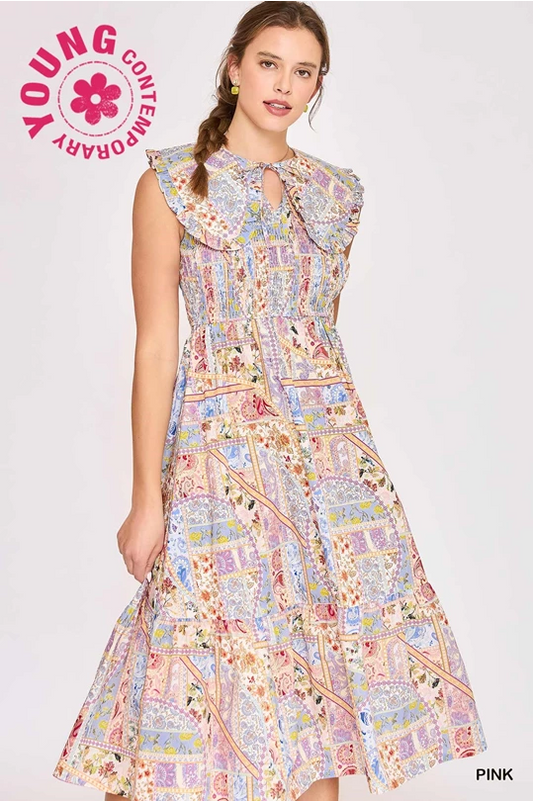 Patchwork Petal Taupe Sleeveless Midi Dress