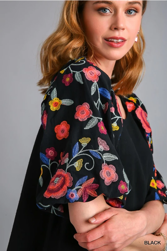 Black Top with Embroidered Sleeves