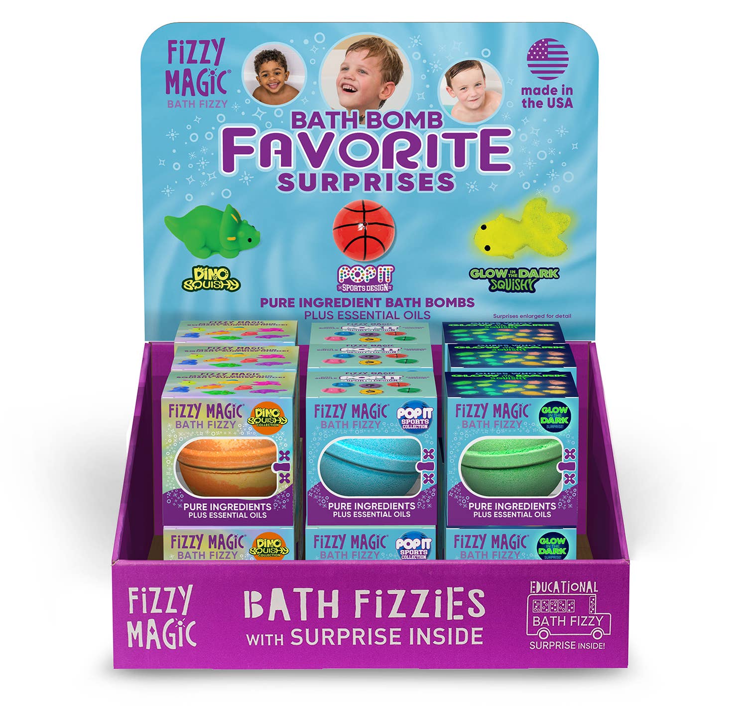 Bath Bombs with mix of Favorite Boy Surprises (Squishy Dinosaurs, Sports Design POP ITs & Glow In Dark Squishy)