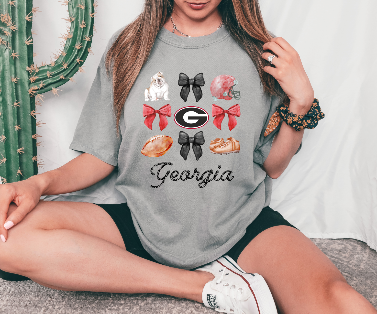 Show your Dawg pride in the Between the Hedges Tee! š¾ This classic Comfort Colors shirt is soft, relaxed, and game-day ready with all the Georgia vibesābulldog, helmet, football, bows, cleats, and the iconic āGā front and center. Perfect for tailgates, stadium Saturdays, or just repping your team around town. Pair it with denim shorts or joggers for that effortlessly spirited look. Go Dawgs! ā¤ļøš¤