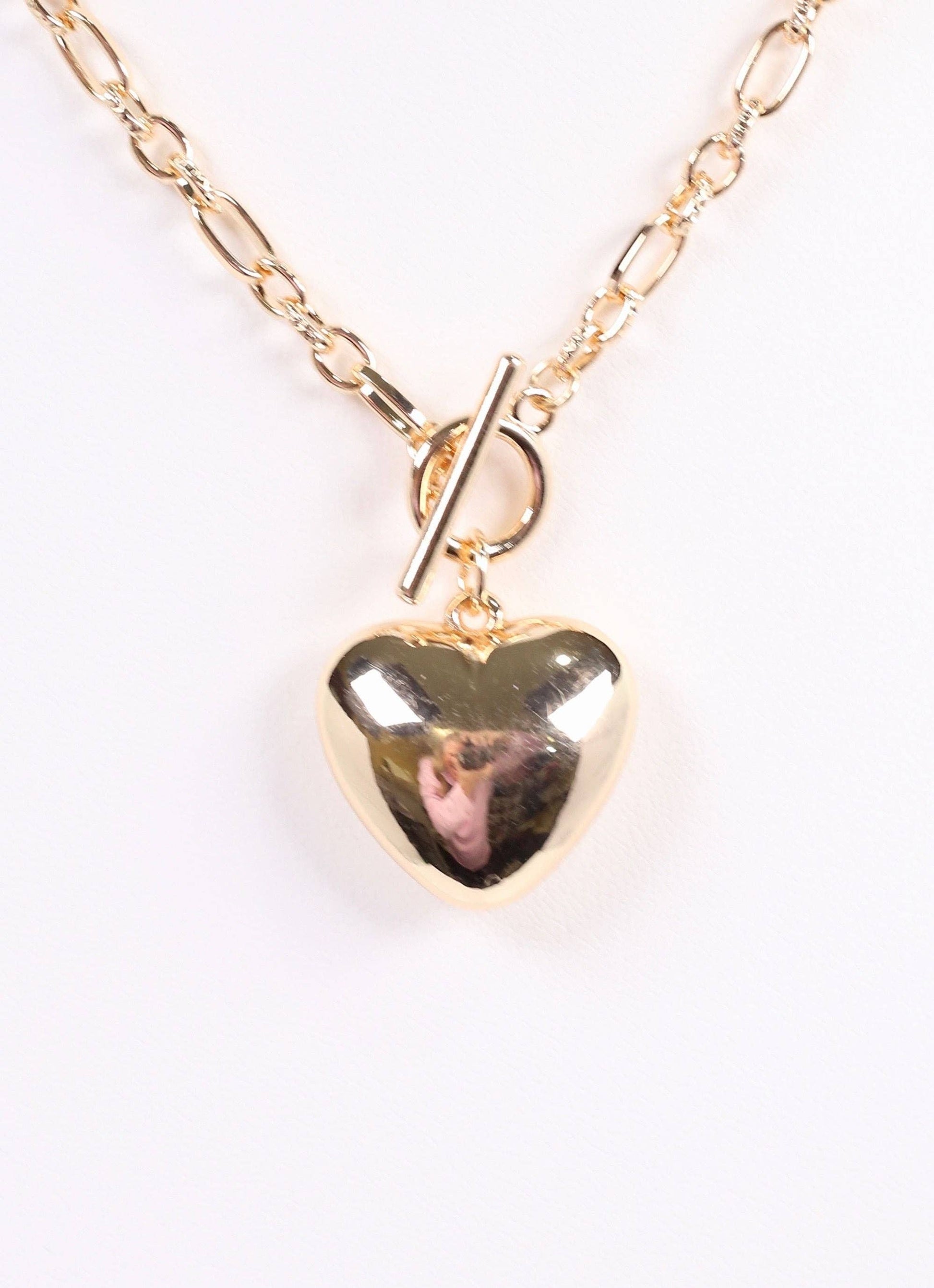 Complete your look with this link necklace featuring a puffed heart charm. It has a front toggle closure making it easy to wear.