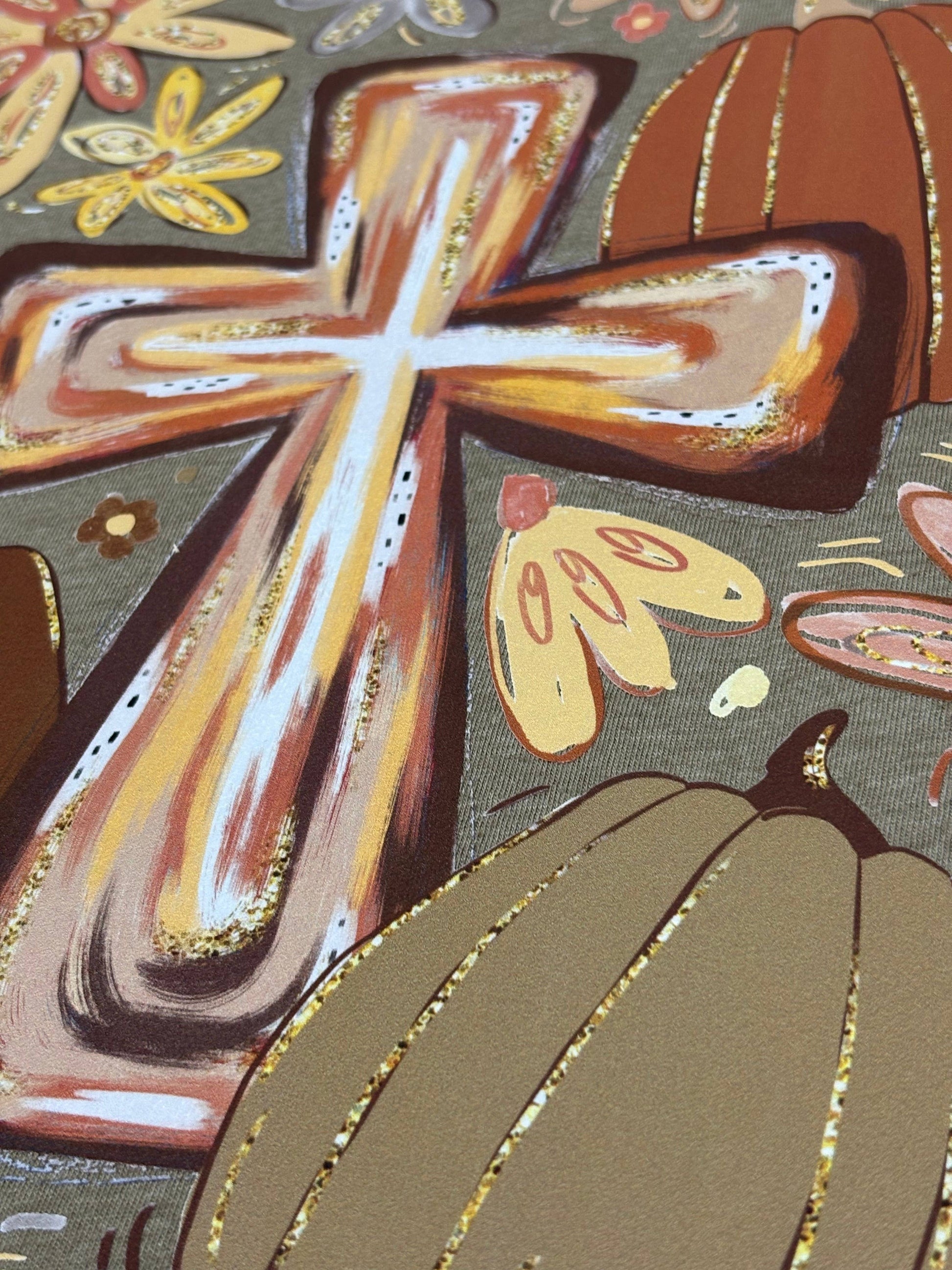 Celebrate the beauty of the season and the strength of your faith with our Faith in Fall Long Sleeve Tee. This soft Bella Canvas top features a hand-painted-style design with a glowing cross surrounded by cheerful autumn florals and cozy pumpkins in warm, earthy tones. Perfect for crisp fall days, church gatherings, or casual weekends, this tee blends comfort and inspiration beautifully.