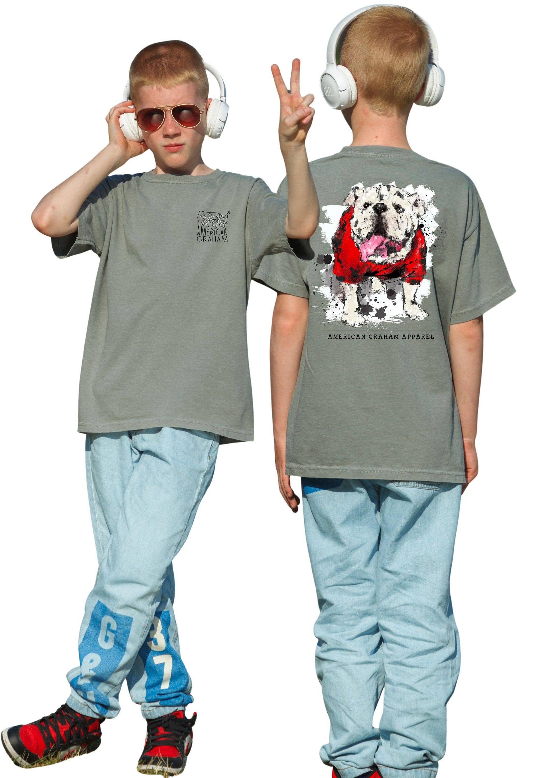 YOUTH Here comes the BOOM bulldog comfort tee Experience the ultimate game day spirit with our newest bulldog design - shouting "Go Dawgs" never looked this stylish! Created by Georgia artist, Ashley B. Graham, this tee boasts original artwork on the back, making it a must-have for passionate fans who demand both comfort and fashion. PRINTED ON COMFORT COLORS Features * 100% Ring Spun Cotton